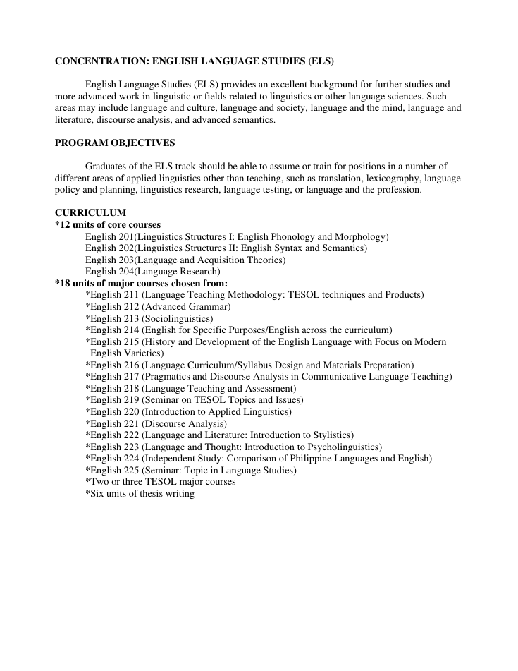 The Master of Arts in Education Major in English Language Teaching (MALT) Program: A Review of the Curriculum