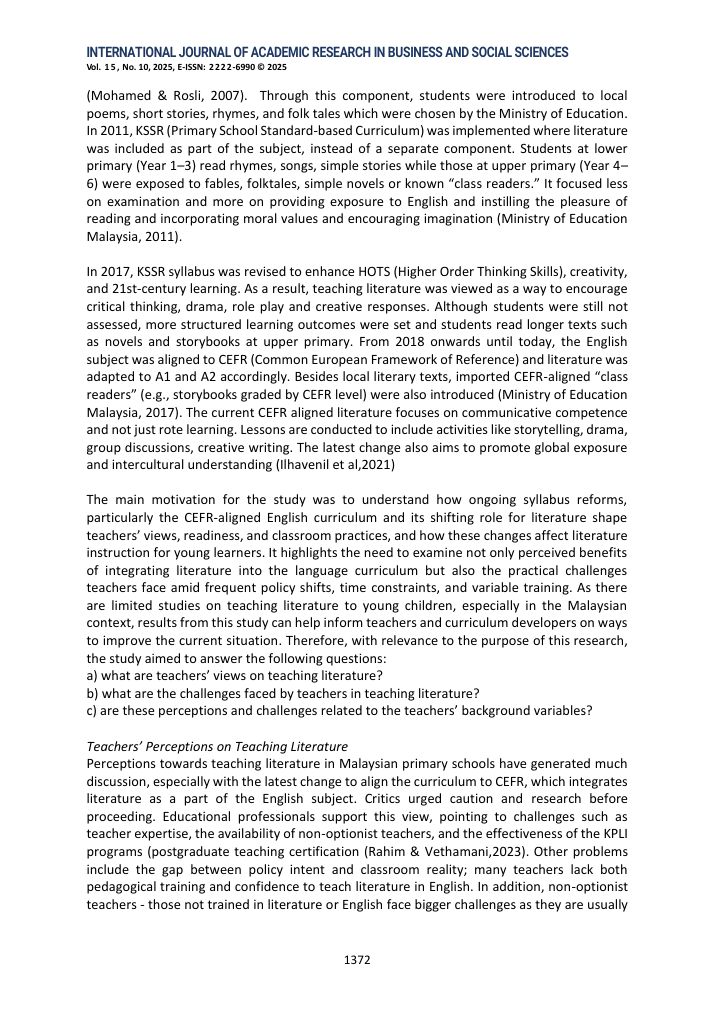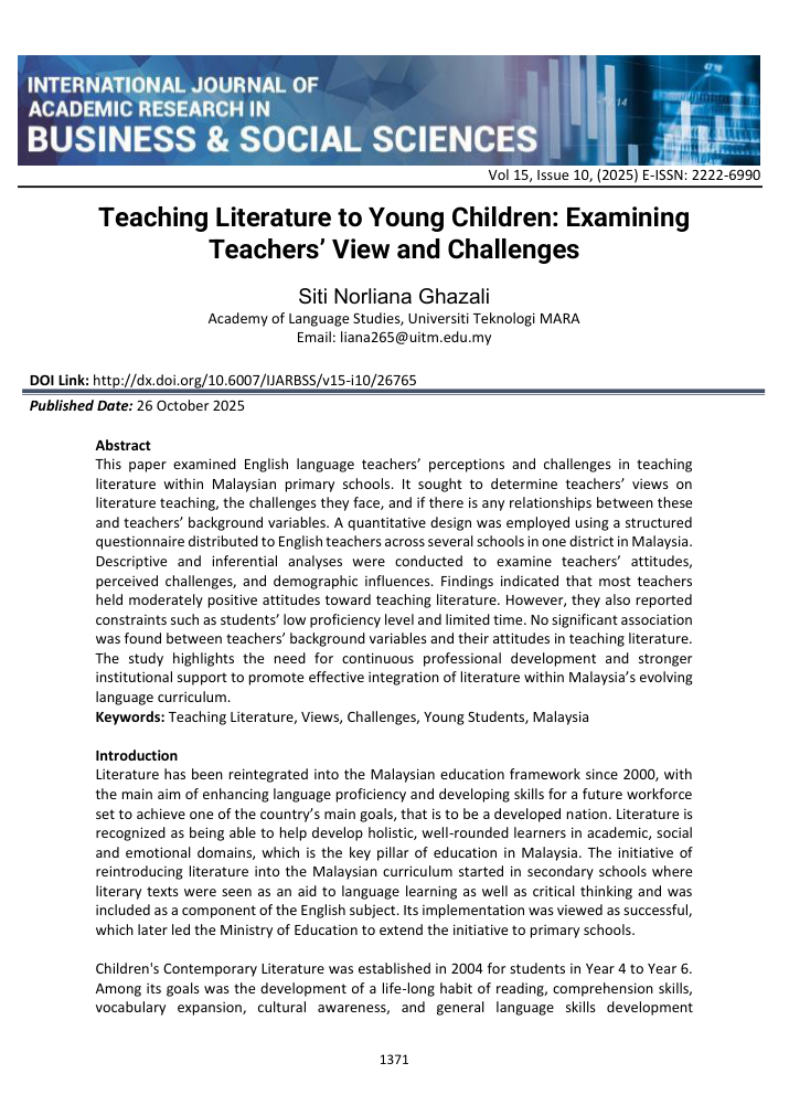 Teaching Literature to Young Children: Examining Teachers’ View and Challenges