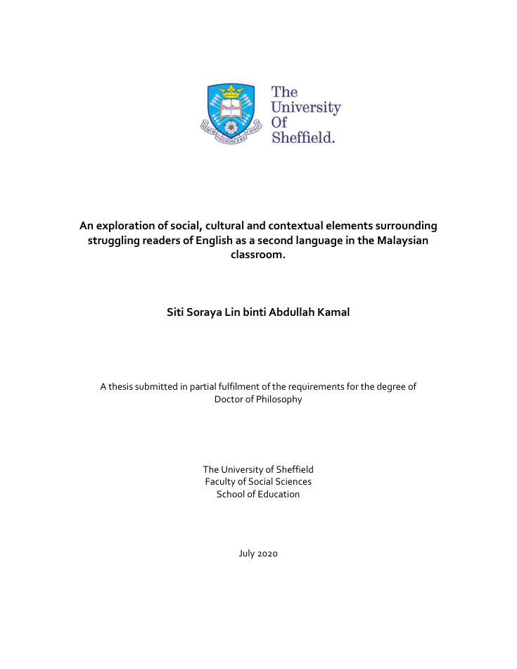An exploration of social, cultural and contextual elements surrounding struggling readers of English as a second language in the Malaysian classroom.