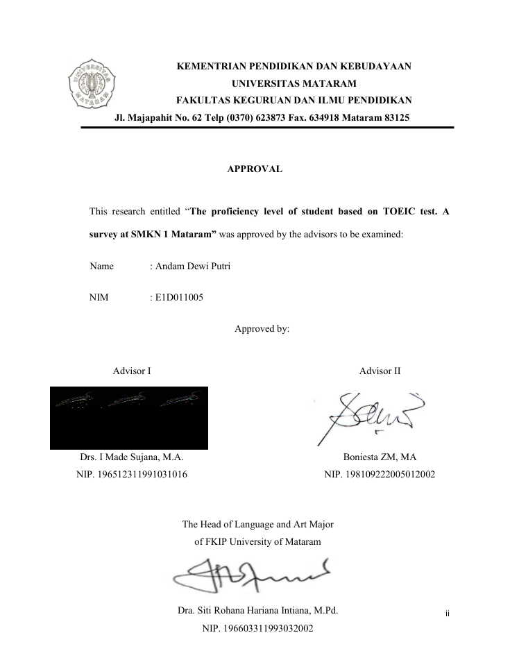 THE PROFICIENCY LEVEL OF ENGLISH LANGUAGE LEARNERS BASED ON TOEIC TEST: A Survey At SMKN 1 Mataram West Nusa Tenggara Academic