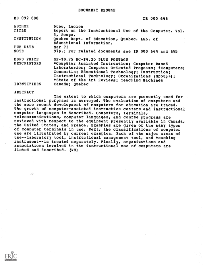 Report on Volume III The Instructional ScopeUse of the Computer